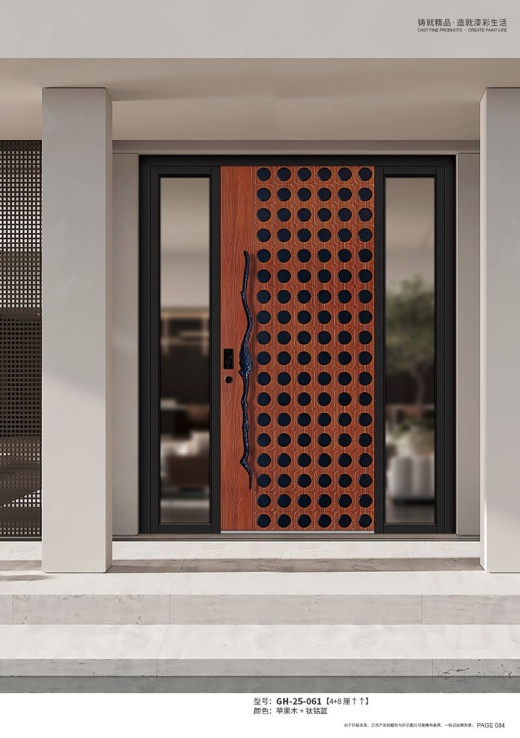 This entrance door is manufactured using high-quality aluminum alloy as the structural base, ensuring excellent strength, dimensional stability, and corrosion resistance.